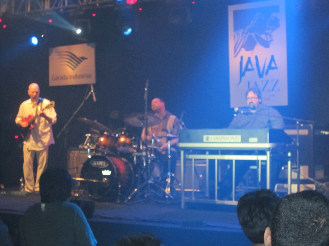 One of the highlights of the entire festival occurred each night, after the festival shows had concluded. The Java Jazz Festival staff in conjunction with the Hotel Borobudur arranged for the hotel’s lounge/showroom to be made available exclusively to the jazz festival performers from midnight until morning. They provided us with professional sound and lights with appropriate technicians, stage, guitar and bass amps, drum kit, grand piano and a Hammond B3 organ.