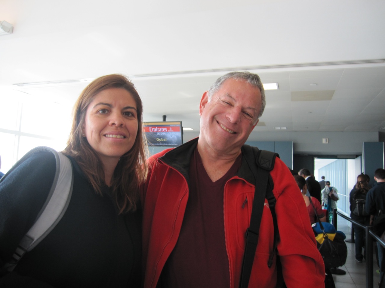 Lucas was booked on another flight. From L to R: Chris, Ava, Chas & Paul just before boarding our flight in New York.